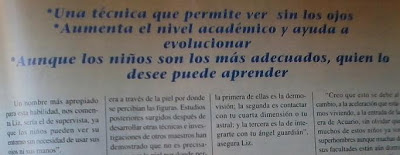Se supone que niños y adultos pueden aprender a ver con la piel de las palmas de las manos (en realidad con la piel de cualquier parte del cuerpo). Así, el señor José Luis Altamirano afirma que por sus cursos han pasado muchísimas personas. Ah, porque este hombre lleva varias décadas enseñando -principalmente a niños- a realizar este portento. Según dice Muñoz, un adulto puede aprender en un par de días. Vea usted una demostración.