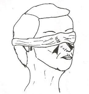 c) Cuando se les puso a los niños un parche ovalado sobre los ojos, no pudieron identificar el material que se les presentaba. Como el parche se ponía estando los ojos cerrados, se impidió abrir los ojos y ver por alguna rendija, cosa que sí se pudo hacer con el vendaje utilizado en los ensayos anteriores.