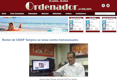 Cuento lo anterior por la nota que enlazo a continuación: Rector de CEDIP Tampico se lanza contra homosexuales. Por lo visto, Pascual García además de tener la cabeza llena de fantasías con respecto a extraterrestres (ha dicho que extraterrestres buenos y malos libran batallas en nuestros cielos y que la esfera Victoria es parte de una nave dañada en una de esas peleas), también tiene prejuicios (ideas falsas) con respecto a la homosexualidad y la bisexualidad.